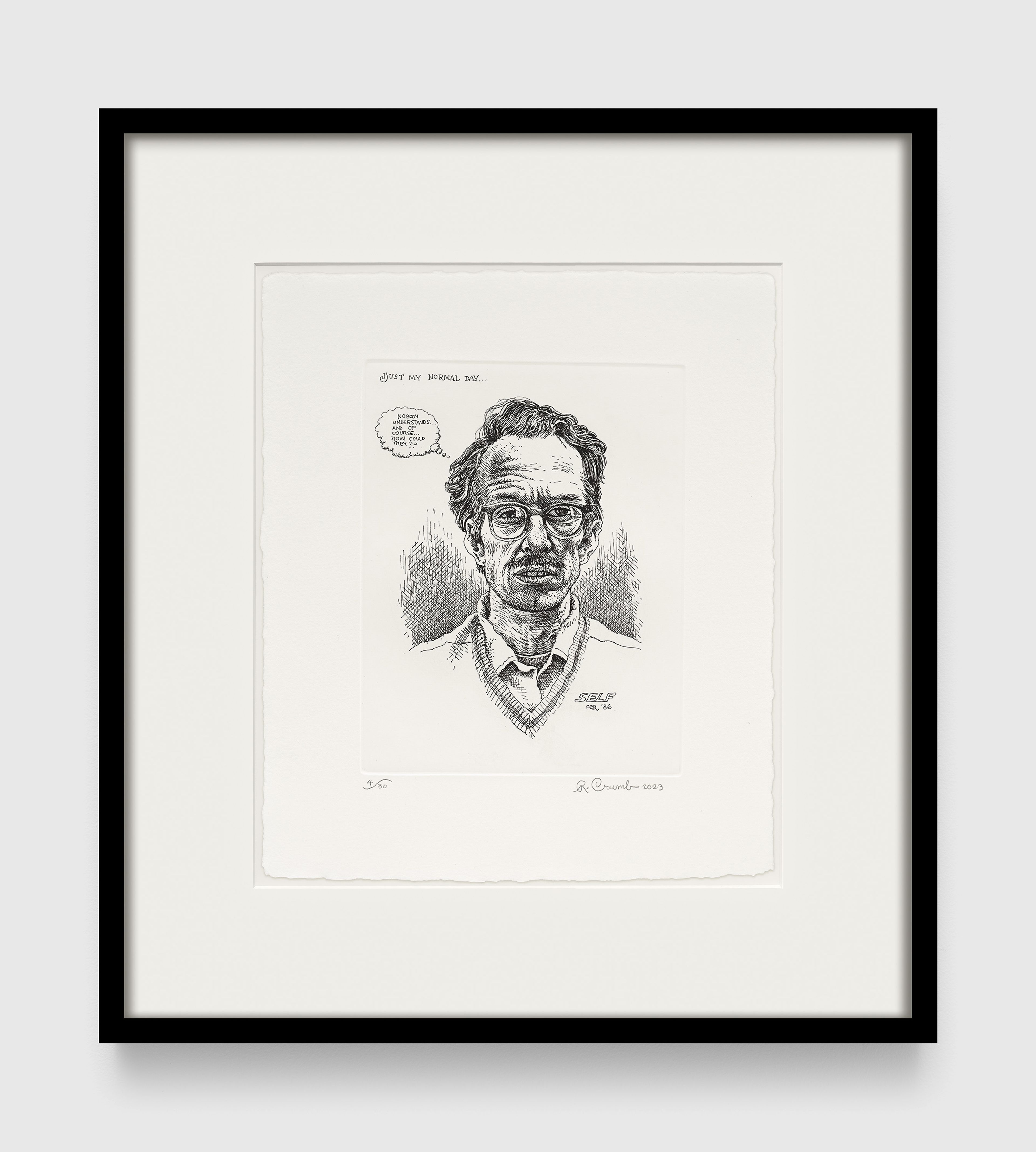 R. Crumb, Self Portrait (Just My Normal Day), 2023, Etching on paper, 13 x 11 inches