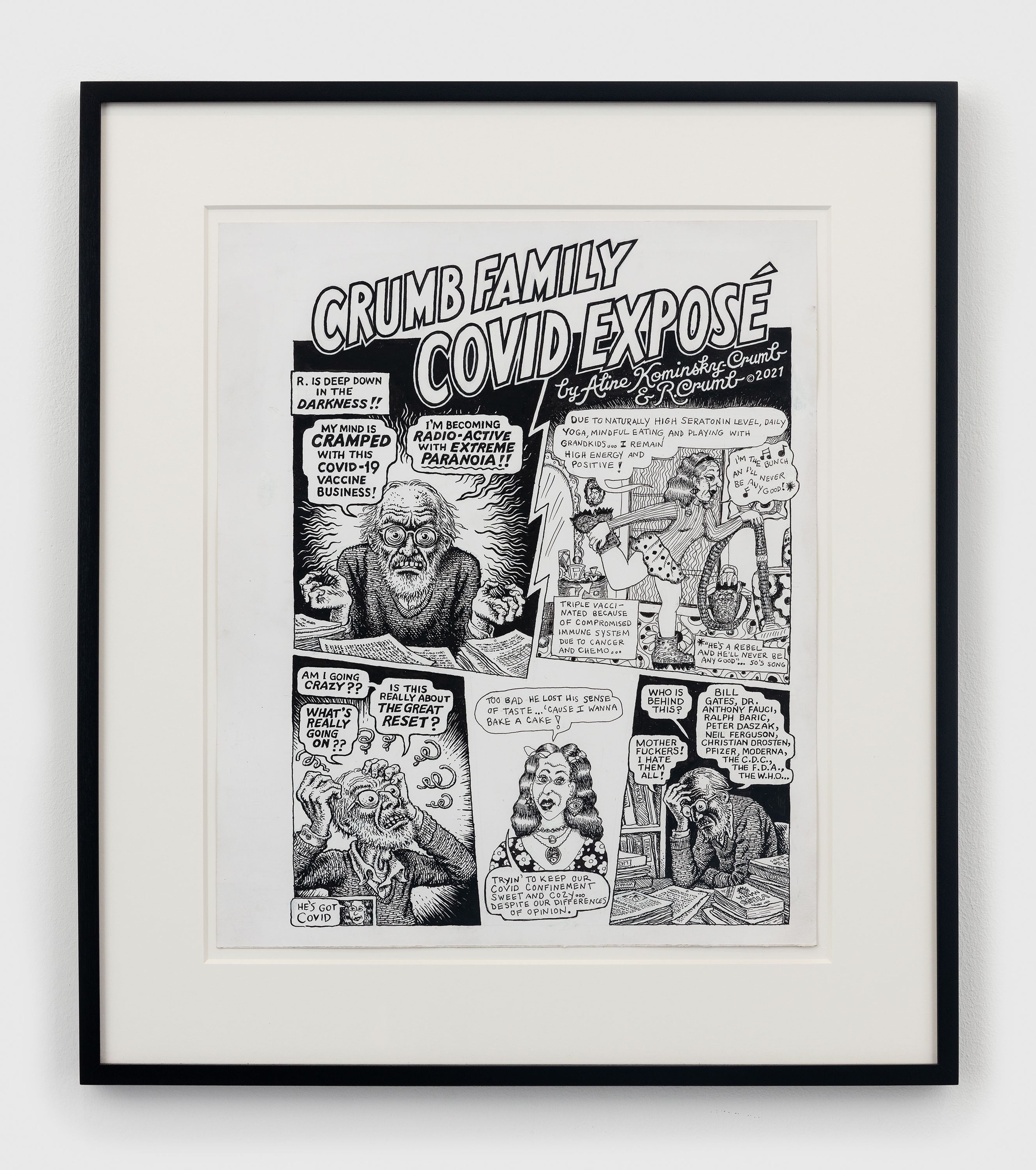 Aline Kominsky-Crumb, R. Crumb, and Sophie Crumb, Crumb Family Covid Exposé, 2021, Ink and correction fluid on paper in ten (10) parts, Overall dimensions variable, Each: 16 7/8 x 14 inches