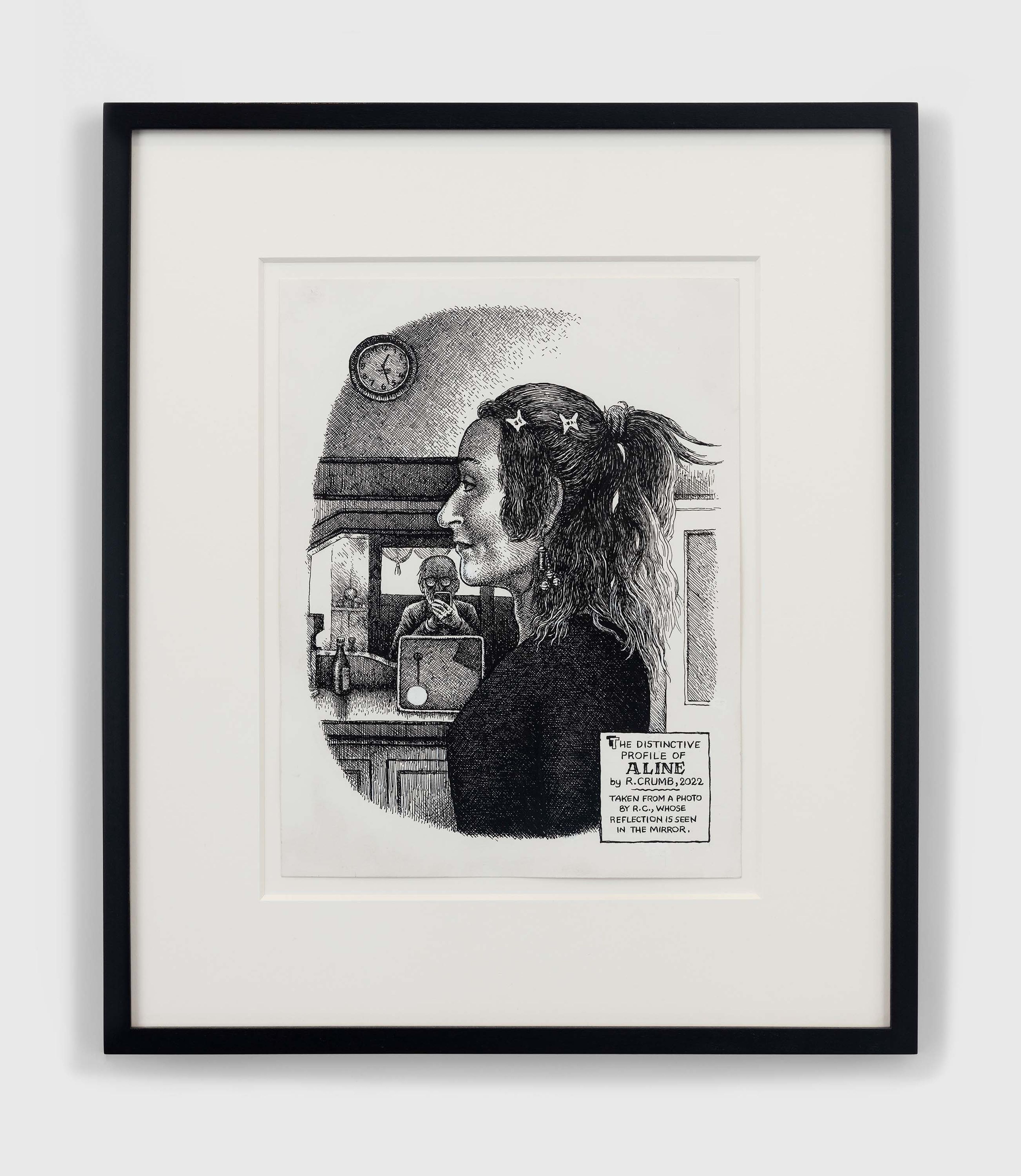 R. Crumb, The Distinctive Portrait of Aline, 2022, Ink and correction fluid on paper, 11 x 8 1/2 inches